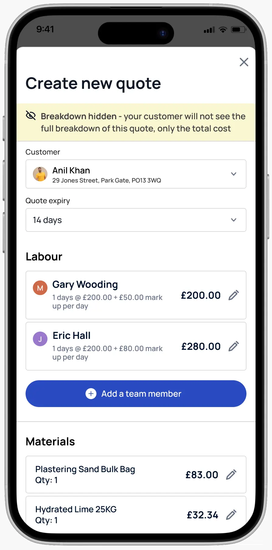 Schedule jobs, get instant reminders, and see your whole week at a glance. No paper diaries. No double bookings. No forgotten jobs. Just one calendar that's always on it.