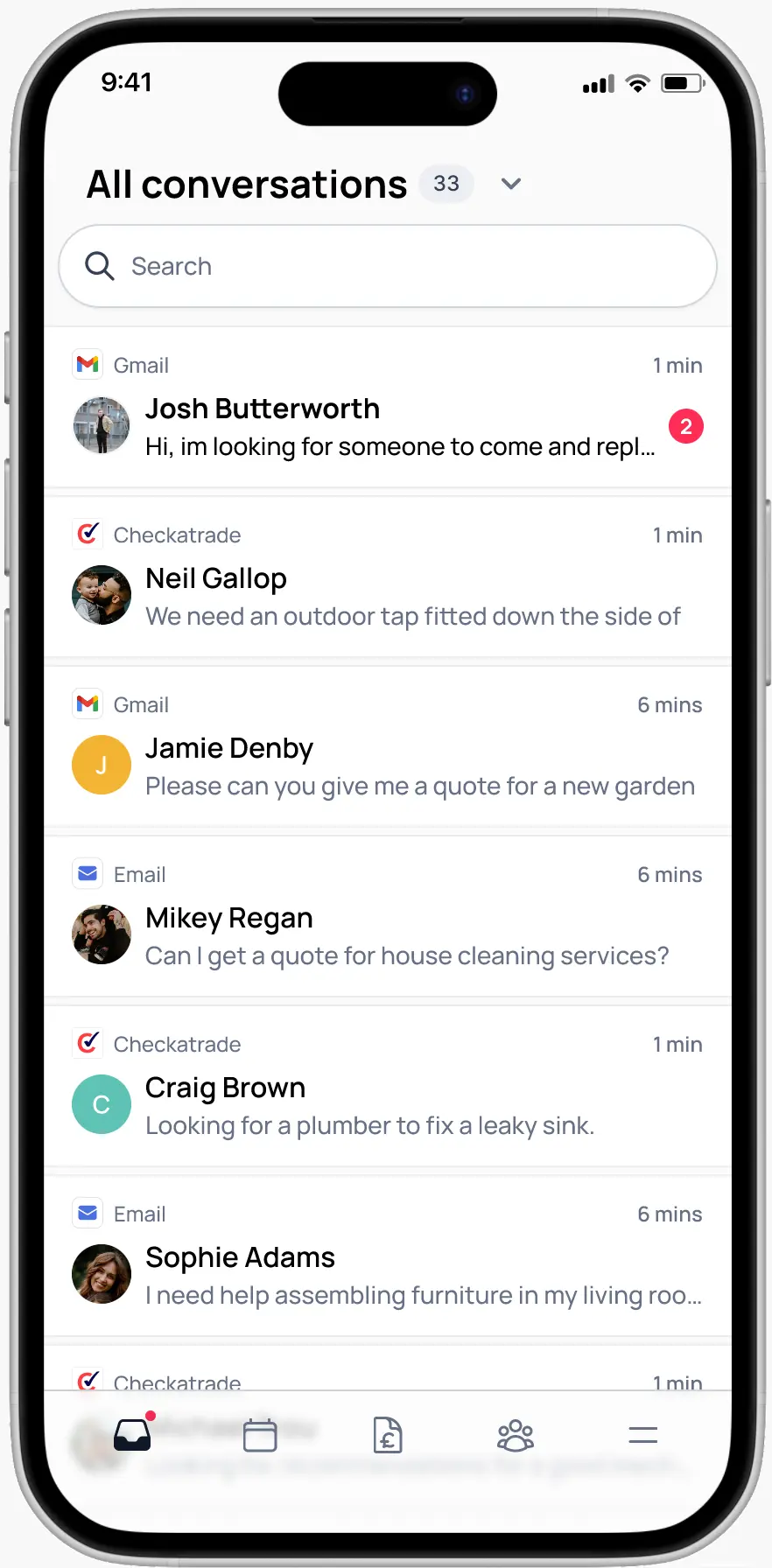 Connect all your inboxes. Checkatrade, Gmail, Email and more into one place. Stay on top of every lead. No more lost work.
