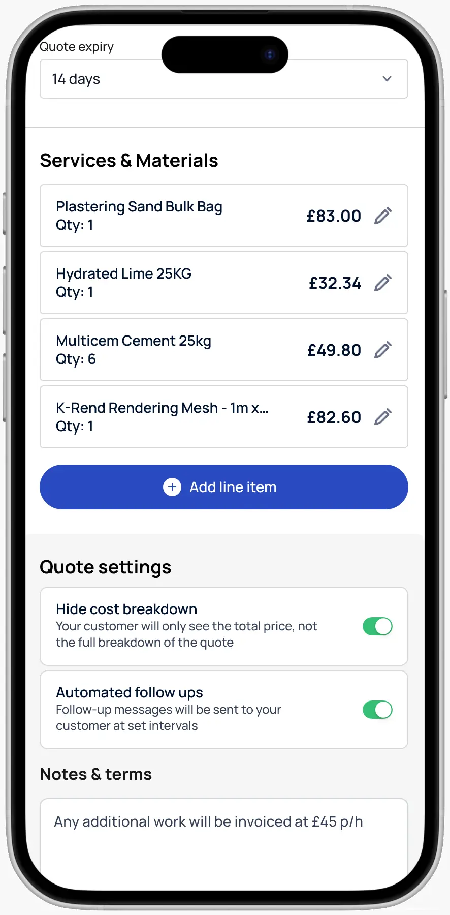 Send professional quotes and invoices in seconds